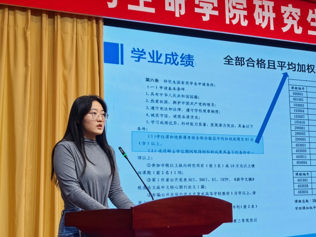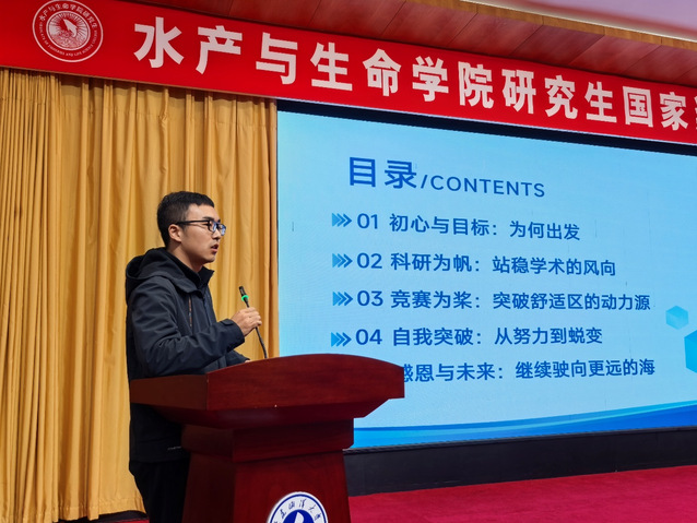 为充分发挥大马彩票(中国)官方网站 研究生国家奖学金获得者的榜样示范作用,搭建优良学风建设交流平台,帮助同学们明确学习目标、掌握科学方法。11月11日上午,大马彩票(中国)官方网站 于图书馆报告厅举办研究生国家奖学金经验分享会,会议邀请到三名国家奖学金获得者作为分享嘉宾进行分享。本次活动由2024级水产专业研究生邓雅杰主持,学院全体研究生辅导员、教学秘书以及学院低年级研究生共同参与。