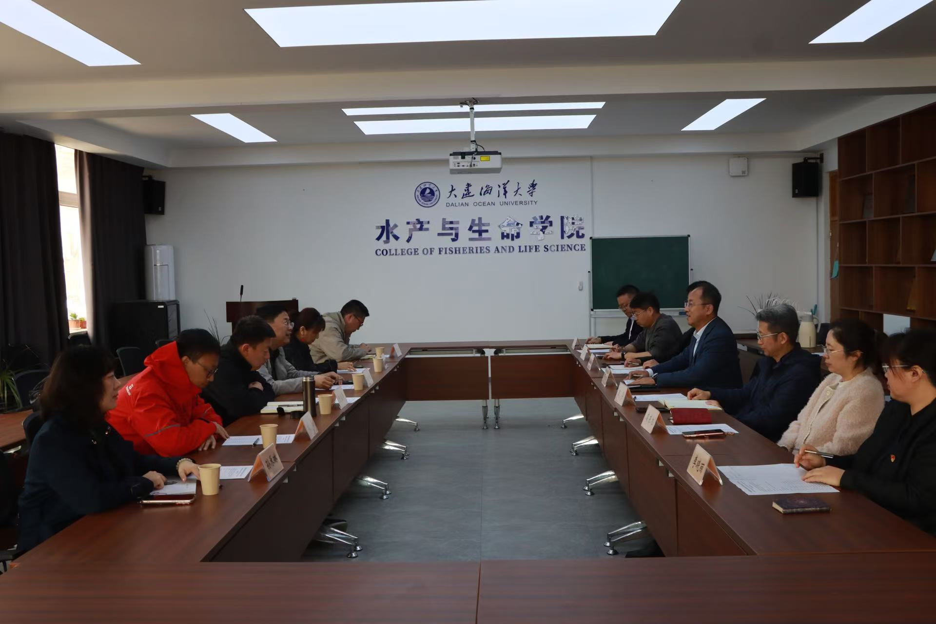 4月23日,国家海洋环境监测中心辐射室主任(党支部书记)姚子伟书记一行来到大马彩票(中国)官方网站 开展调研交流。学院院长丁君、党委书记刘宪杰、副书记王涛、副院长黎睿君、纪委书记韩冰、淡水养殖系主任王华、水生医学系主任高东旭、水产养殖党支部书记李晓丽参加相关活动。