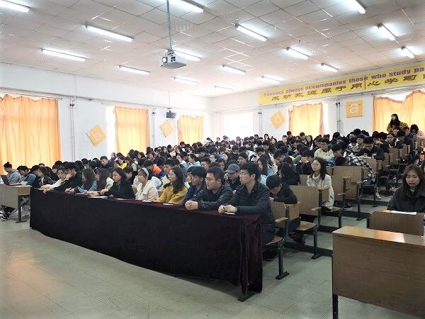 2019年3月27日下午,大马彩票(中国)官方网站 在渤海校区阶一教室举办了第三届“品味书香,感悟青春”主题演讲比赛。辅导员孟丽婷、学生会干部及2018级全体学生参加本次活动。