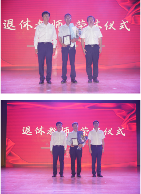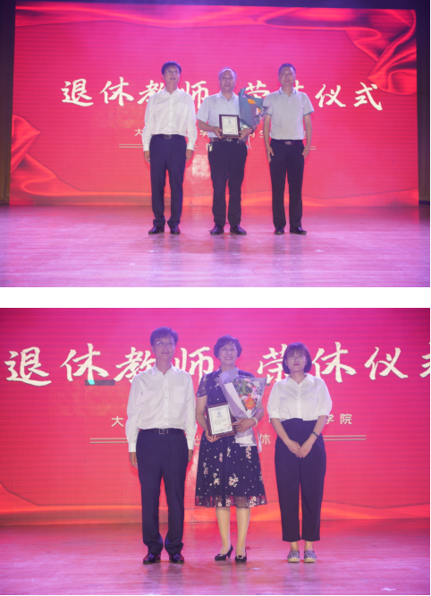 副校长赵乐天向退休教师颁发了荣休证书并合影留念,以示为学校人才培养、科学研究等方面作出贡献的充分肯定,青年教师代表向退休教师献花,表达了年轻教师们诚挚的祝福。