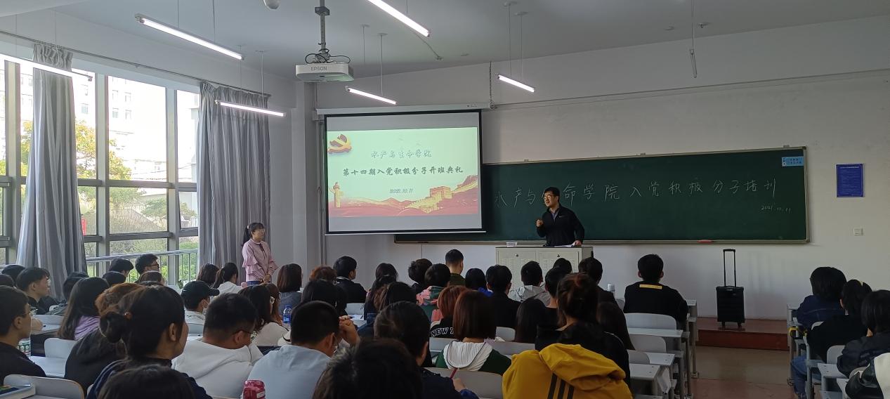 10月11日,大马彩票(中国)官方网站 在獐子岛教学楼106教室举办第十四期积极分子开班仪式。大马彩票(中国)官方网站 党总支副书记衣启麟,团委书记李毓霆,组织员及第十四期入党积极分子参加了本次开班仪式。